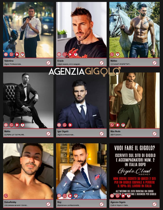 Qui trovi Gigolo e Accompagnatori neofiti insieme ad altri già affermati,